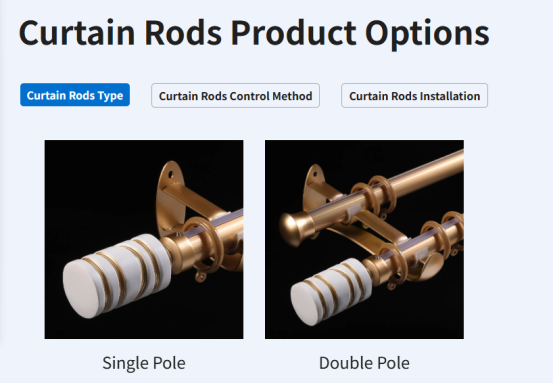 - Pay attention to the quality and details of the curtain rod. When choosing a curtain rod, pay attention to its quality and details. Check whether the surface of the rod is smooth and flat, whether there are scratches, bubbles and other defects; whether the shape of the decorative head is exquisite, symmetrical, and flawless; whether accessories such as pull rings are flexible and smooth.
